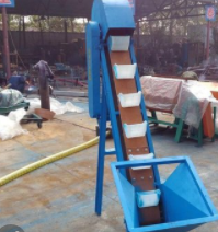 斗式提升機(jī)的輸送工作原理是:料斗把物料從下面的儲(chǔ)藏中舀起,隨著輸送帶或鏈提升到頂部,繞過(guò)頂輪后向下翻轉(zhuǎn), 斗式提升機(jī)將物料傾入接受槽內(nèi)。帶傳動(dòng)的斗式提升機(jī)的傳動(dòng)帶一般采用橡膠帶,裝在下或上面的傳動(dòng)滾筒和上下面的改向滾筒上。鏈傳動(dòng)的斗式提升機(jī)一般裝有兩條平行的傳動(dòng)鏈,上或下面有一對(duì)傳動(dòng)鏈輪,下或上面是一對(duì)改向鏈輪。斗式提升機(jī)一般都裝有機(jī)殼,以防止斗式提升機(jī)中粉塵飛揚(yáng)。